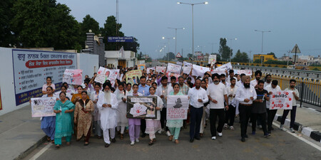 ਢਾਹਾਂ ਕਲੇਰਾਂ ਵਿਖੇ ਕੋਲਕਾਤਾ ਅਤੇ ਉੱਤਰਾਖੰਡ ਦੀ ਦੁੱਖਦਾਈ ਘਟਨਾ ਦੇ ਸਬੰਧ ਵਿੱਚ ਵਿਦਿਆਰਥੀ, ਨਰਸਾਂ ਅਤੇ ਡਾਕਟਰ ਕੈਂਡਲ ਮਾਰਚ ਕਰਦੇ ਹੋਏ