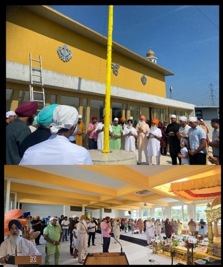 ਨਵੀਂ ਦਿੱਲੀ, (ਮਨਪ੍ਰੀਤ ਸਿੰਘ ਖਾਲਸਾ):- ਸਵਿਟਜਰਲੈਡ ਦੇ ਗੁਰਦੁਆਰਾ ਪ੍ਰੰਬਧਕ ਕਮੇਟੀ ਡੈਨੀਕਨ ਦੇ ਸਮੂੰਹ ਮੈਂਬਰ ਅਤੇ ਭਾਰੀ ਗਿਣਤੀ ਅੰਦਰ ਸੰਗਤਾਂ ਸ੍ਰੀ ਗੁਰੂ ਗ੍ਰੰਥ ਸਾਹਿਬ ਜੀ ਦੇ ਪਹਿਲੇ ਪ੍ਰਕਾਸ਼ ਪੁਰਬ ਮੌਕੇ ਅਖੰਡ ਪਾਠ ਸਾਹਿਬ ਜੀ ਦੇ ਭੋਗ ਉਪ੍ਰੰਤ ਬੰਸਤੀ ਰੰਗ ਦਾ ਨਿਸ਼ਾਨ ਸਾਹਿਬ ਚੜਾਉਣ ਲਈ ਸੇਵਾ ਵਿੱਚ ਹਾਜਿਰ ਹੋਏ ਸਨ । ਭਾਈ ਕਰਨੈਲ ਸਿੰਘ ਜੀ ਨੇ ਅਰਦਾਸ ਕੀਤੀ, ਉਪ੍ਰੰਤ ਜੈਕਾਰਿਆਂ ਦੀ ਗੂੰਜਚ ਬੰਸਤੀ ਰੰਗ ਦੇ ਨਿਸ਼ਾਨ ਸਾਹਿਬ ਝੂਲਾਏ ਗਏ । ਉਪਰੰਤ ਗੁਰਦੁਆਰਾ ਸਾਹਿਬ ਅੰਦਰ ਕੀਰਤਨੀ ਦੀਵਾਨ ਸਜਾਏ ਗਏ, ਸਜੇ ਹੋਏ ਦੀਵਾਨ ਵਿੱਚ ਬਚਿੱਆ ਅਤੇ ਹਜੂਰੀ ਰਾਗੀ ਜੱਥੇ ਨੇ ਗੁਰਬਾਣੀ ਕੀਰਤਨ ਰਾਹੀ ਸੰਗਤਾਂ ਨੂੰ ਨਿਹਾਲ ਕੀਤਾ।