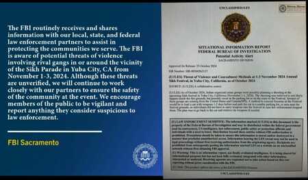 ਨਵੀਂ ਦਿੱਲੀ, (ਮਨਪ੍ਰੀਤ ਸਿੰਘ ਖਾਲਸਾ):- ਵਿਦੇਸ਼ਾਂ ਅੰਦਰ ਕੀਤੇ ਗਏ ਸਿੱਖਾਂ ਦੇ ਕਤਲ ਅਤੇ ਕਤਲ ਦੀ ਕੋਸ਼ਿਸ਼ ਨੂੰ ਦੇਖਦਿਆਂ ਯੂਬਾ ਸਿਟੀ ਵਿਖੇ ਸ੍ਰੀ ਗੁਰੂ ਗ੍ਰੰਥ ਸਾਹਿਬ ਦੇ ਪਹਿਲੇ ਪ੍ਰਕਾਸ਼ ਪੁਰਬ ਮੌਕੇ ਸਜਾਏ ਜਾਣ ਵਾਲੇ ਸਾਲਾਨਾ ਨਗਰ ਕੀਰਤਨ ਦੌਰਾਨ ਐਫ਼.ਬੀ.ਆਈ ਵਲੋਂ ਸਿੱਖ ਪੰਥ ਨੂੰ ਹਿੰਸਾ (ਬਾਹਰੀ ਵਿਅਕਤੀਆਂ ਵਲੋਂ ਹਮਲਾ) ਦੇ ਖਤਰੇ ਦੀ ਚੇਤਾਵਨੀ ਜਾਰੀ ਕਰਦਿਆਂ ਸੁਚੇਤ ਰਹਿਣ ਦੀ ਅਪੀਲ ਕੀਤੀ ਗਈ ਹੈ । ਐਫ਼.ਬੀ.ਆਈ. ਨੇ ਇਕ ਬਿਆਨ ਜਾਰੀ ਕਰਦਿਆਂ ਕਿਹਾ ਕਿ ਫਿਲਹਾਲ ਖਤਰੇ ਬਾਰੇ ਤਸਦੀਕ ਨਹੀਂ ਕੀਤੀ ਜਾ ਸਕੀ ਪਰ ਹਾਲਾਤ ਦੀ ਨਜ਼ਾਕਤ ਨੂੰ ਵੇਖਦਿਆਂ ਲਾਅ ਐਨਫੋਰਸਮੈਂਟ ਏਜੰਸੀਆਂ ਨਾਲ ਭਾਈਵਾਲੀ ਤਹਿਤ ਚੌਕਸੀ ਵਰਤੀ ਜਾ ਰਹੀ ਹੈ ਅਤੇ ਸਿੱਖ ਭਾਈਚਾਰੇ ਦੀ ਸੁਰੱਖਿਆ ਯਕੀਨੀ ਬਣਾਈ ਜਾਵੇਗੀ। ਫੈਡਰਲ ਬਿਊਰੋ ਆਫ਼ ਇਨਵੈਸਟੀਗੇਸ਼ਨ ਵੱਲੋਂ ਭਾਈਚਾਰੇ ਨੂੰ ਸੁਚੇਤ ਰਹਿਣ ਦਾ ਸੱਦਾ ਦਿਤਾ ਗਿਆ ਹੈ ਅਤੇ ਕਿਸੇ ਵੀ ਕਿਸਮ ਦੀ ਸ਼ੱਕੀ ਸਰਗਰਮੀ ਮਹਿਸੂਸ ਹੋਣ ’ਤੇ ਪੁਲਿਸ ਨਾਲ ਸੰਪਰਕ ਕਰਨ ਦੀ ਹਦਾਇਤ ਦਿਤੀ ਗਈ ਹੈ।