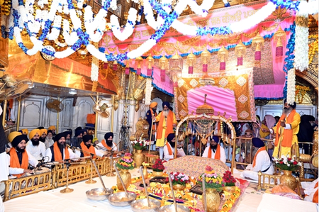 ਇਸੇ ਦੌਰਾਨ ਸ਼੍ਰੋਮਣੀ ਗੁਰਦੁਆਰਾ ਪ੍ਰਬੰਧਕ ਕਮੇਟੀ ਵੱਲੋਂ ਗੁਰਦੁਆਰਾ ਸ੍ਰੀ ਮੰਜੀ ਸਾਹਿਬ ਦੀਵਾਨ ਹਾਲ ਵਿਖੇ ਸ੍ਰੀ ਅਖੰਡਪਾਠ ਸਾਹਿਬ ਦੇ ਭੋਗ ਪਾਏ ਗਏ। ਇਸ ਮੌਕੇ ਸੱਚਖੰਡ ਸ੍ਰੀ ਹਰਿਮੰਦਰ ਸਾਹਿਬ ਦੇ ਹਜ਼ੂਰੀ ਰਾਗੀ ਭਾਈ ਹਰਵਿੰਦਰ ਸਿੰਘ ਦੇ ਜਥੇ ਵੱਲੋਂ ਇਲਾਹੀ ਗੁਰਬਾਣੀ ਕੀਰਤਨ ਕੀਤਾ ਗਿਆ। ਅਰਦਾਸ ਭਾਈ ਬਲਜੀਤ ਸਿੰਘ ਨੇ ਕੀਤੀ ਅਤੇ ਪਾਵਨ ਹੁਕਮਨਾਮਾ ਸੱਚਖੰਡ ਸ੍ਰੀ ਹਰਿਮੰਦਰ ਸਾਹਿਬ ਦੇ ਗ੍ਰੰਥੀ ਸਿੰਘ ਸਾਹਿਬ ਗਿਆਨੀ ਕੇਵਲ ਸਿੰਘ ਨੇ ਸਰਵਣ ਕਰਵਾਇਆ। ਉਨ੍ਹਾਂ ਸ੍ਰੀ ਗੁਰੂ ਨਾਨਕ ਦੇਵ ਜੀ ਦੇ ਜੀਵਨ ਬਾਰੇ ਚਾਨਣਾ ਪਾਉਂਦਿਆਂ ਸੰਗਤਾਂ ਨੂੰ ਗੁਰੂ ਸਾਹਿਬ ਦੇ ਉਪਦੇਸ਼ਾਂ ’ਤੇ ਚੱਲਣ ਦੀ ਪ੍ਰੇਰਨਾ ਕੀਤੀ। ਇਸ ਮੌਕੇ ਸ਼੍ਰੋਮਣੀ ਕਮੇਟੀ ਪ੍ਰਧਾਨ ਐਡੋਵੋਕੇਟ ਹਰਜਿੰਦਰ ਸਿੰਘ ਧਾਮੀ ਨੇ ਸੰਗਤਾਂ ਨੂੰ ਸ੍ਰੀ ਗੁਰੂ ਨਾਨਕ ਦੇਵ ਜੀ ਦੇ ਪ੍ਰਕਾਸ਼ ਪੁਰਬ ਦੀ ਵਧਾਈ ਦਿੰਦਿਆਂ ਕਿਹਾ ਕਿ ਗੁਰੂ ਸਾਹਿਬ ਦੇ ਉਪਦੇਸ਼ ਸਮੁੱਚੀ ਮਨੁੱਖਤਾ ਲਈ ਜੀਵਨ ਰੁਸ਼ਨਾਉਣ ਵਾਲੇ ਹਨ। ਗੁਰੂ ਸਾਹਿਬ ਨੇ ਊਚ-ਨੀਚ, ਜਾਤ-ਪਾਤ ਤੇ ਵਰਨ-ਵੰਡ ਦੀਆਂ ਵਲਗਣਾਂ ਨੂੰ ਤੋੜ ਕੇ ਇਕ ਅਕਾਲ ਪੁਰਖ ਦੇ ਲੜ ਲਾਇਆ। ਉਨ੍ਹਾਂ ਸੰਗਤਾਂ ਨੂੰ ਗੁਰੂ-ਉਪਦੇਸ਼ਾਂ ਅਨੁਸਾਰ ਜੀਵਨ ਬਤੀਤ ਕਰਨ ਦੀ ਅਪੀਲ ਕੀਤੀ। ਗੁਰਦੁਆਰਾ ਸ੍ਰੀ ਮੰਜੀ ਸਾਹਿਬ ਦੀਵਾਨ ਹਾਲ ਵਿਖੇ ਗੁਰਮਤਿ ਸਮਾਗਮ ਦੌਰਾਨ ਪੰਥ ਪ੍ਰਸਿੱਧ ਢਾਡੀ ਤੇ ਕਵੀਸ਼ਰ ਜਥਿਆਂ ਨੇ ਗੁਰ ਇਤਿਹਾਸ ਸਰਵਣ ਕਰਵਾਇਆ।