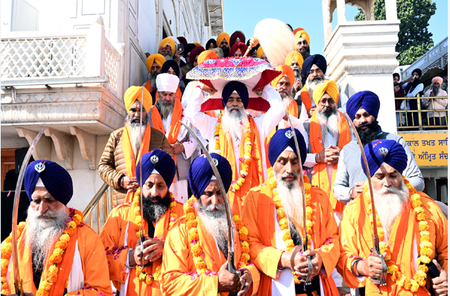 ਅੰਮ੍ਰਿਤਸਰ – ਨੌਵੇਂ ਪਾਤਸ਼ਾਹ ਸ੍ਰੀ ਗੁਰੂ ਤੇਗ ਬਹਾਦਰ ਸਾਹਿਬ ਜੀ ਦੇ ਸ਼ਹੀਦੀ ਦਿਹਾੜੇ ਸਬੰਧੀ ਸ਼੍ਰੋਮਣੀ ਗੁਰਦੁਆਰਾ ਪ੍ਰਬੰਧਕ ਕਮੇਟੀ ਵੱਲੋਂ ਅੱਜ ਸ੍ਰੀ ਅਕਾਲ ਤਖ਼ਤ ਸਾਹਿਬ ਤੋਂ ਗੁਰਦੁਆਰਾ ਗੁਰੂ ਕੇ ਮਹਿਲ ਤੱਕ ਨਗਰ ਕੀਰਤਨ ਸਜਾਇਆ ਗਿਆ। ਸ੍ਰੀ ਗੁਰੂ ਗ੍ਰੰਥ ਸਾਹਿਬ ਜੀ ਦੀ ਛਤਰ ਛਾਇਆ ਅਤੇ ਪੰਜ ਪਿਆਰਿਆਂ ਦੀ ਅਗਵਾਈ ’ਚ ਸਜਾਏ ਨਗਰ ਕੀਰਤਨ ਦੀ ਆਰੰਭਤਾ ਮੌਕੇ ਸੱਚਖੰਡ ਸ੍ਰੀ ਹਰਿਮੰਦਰ ਸਾਹਿਬ ਦੇ ਮੁੱਖ ਗ੍ਰੰਥੀ ਤੇ ਸ੍ਰੀ ਅਕਾਲ ਤਖ਼ਤ ਸਾਹਿਬ ਦੇ ਜਥੇਦਾਰ ਸਿੰਘ ਸਾਹਿਬ ਗਿਆਨੀ ਰਘਬੀਰ ਸਿੰਘ ਨੇ ਅਰਦਾਸ ਉਪਰੰਤ ਸ੍ਰੀ ਗੁਰੂ ਗ੍ਰੰਥ ਸਾਹਿਬ ਜੀ ਦਾ ਪਾਵਨ ਸਰੂਪ ਸੁਨਹਿਰੀ ਪਾਲਕੀ ਵਿਚ ਸੁਸ਼ੋਭਿਤ ਕੀਤਾ ਅਤੇ ਨਗਰ ਕੀਰਤਨ ਦੌਰਾਨ ਚੌਰ ਸਾਹਿਬ ਦੀ ਸੇਵਾ ਵੀ ਨਿਭਾਈ।