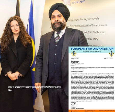 ਯੂਰੋਪ ਦੀ ਪਾਰਲੀਮੈਂਟ ਪਹੁੰਚਿਆ ਭਗਵੰਤ ਮਾਨ ਵਲੋਂ ਕਿਸਾਨ ਨੇਤਾਵਾਂ ਨੂੰ ਗ੍ਰਿਫਤਾਰ ਕਰਨ ਅਤੇ ਮੋਰਚੇ ਨੂੰ ਧੱਕੇ ਨਾਲ ਚੁਕਵਾਉਣ ਦਾ ਮੁੱਦਾ