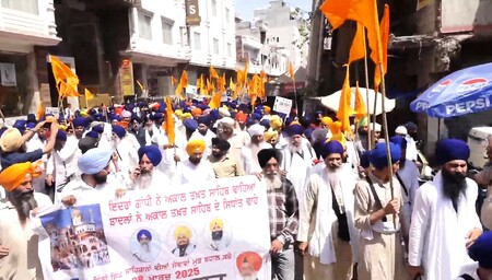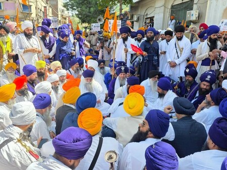 ਬਾਬਾ ਹਰਨਾਮ ਸਿੰਘ ਖ਼ਾਲਸਾ ਦੀ ਅਗਵਾਈ ਹੇਠ ਅੱਜ ਸੰਤ ਸਮਾਜ ਅਤੇ ਸਮੂਹ ਸਿੱਖ ਜਥੇਬੰਦੀਆਂ, ਦਿਲੀ ਸਿੱਖ ਗੁਰਦੁਆਰਾ ਪ੍ਰਬੰਧਕ ਕਮੇਟੀ, ਹਰਿਆਣਾ ਸਿੱਖ ਗੁਰਦੁਆਰਾ ਪ੍ਰਬੰਧਕ ਕਮੇਟੀ, ਚੀਫ਼ ਖ਼ਾਲਸਾ ਦੀਵਾਨ, ਨਿਹੰਗ ਸਿੰਘ ਜਥੇਬੰਦੀਆਂ, ਪੰਥਕ ਜਥੇਬੰਦੀ ਅਤੇ ਸੰਗਤਾਂ ਦਾ ਭਾਰੀ ਇਕ ਪਹਿਲਾਂ ਨਿਊ ਅੰਮ੍ਰਿਤਸਰ ਦੇ ਗੋਲਡਨ ਗੇਟ ’ਤੇ ਕੀਤਾ ਗਿਆ ਫਿਰ ਇੱਥੋਂ ਕਾਫ਼ਲੇ ਦੇ ਰੂਪ ਵਿਚ ਸ਼੍ਰੋਮਣੀ ਕਮੇਟੀ ਦੇ ਦਫ਼ਤਰ ਵਲ ਸ਼ਾਂਤਮਈ ਰੋਸ ਮਾਰਚ ਕੀਤਾ ਗਿਆ। ਪੰਥਕ ਜਥੇਬੰਦੀਆਂ ਦਾ ਕਾਫ਼ਲਾ ਸ੍ਰੀ ਹਰਿਮੰਦਰ ਸਾਹਿਬ ਸਮੂਹ ਨੇੜੇ ਸਰਾਵਾਂ ਦੇ ਬਾਹਰ ਪਹੁੰਚ ਗਿਆ ਹੈ ਜਿੱਥੇ ਪੁਲਿਸ ਵੱਲੋਂ ਇਸ ਕਾਫ਼ਲੇ ਨੂੰ ਰੋਕ ਲਏ ਜਾਣ ਉਪਰੰਤ ਧਰਨਾ ਦੇ ਦਿੱਤਾ ਗਿਆ ਹੈ ਅਤੇ ਉੱਥੇ ਹੀ ਸ੍ਰੀ ਸੁਖਮਨੀ ਸਾਹਿਬ ਜੀ ਦੇ ਪਾਠ ਆਰੰਭ ਕਰ ਦਿੱਤੇ ਗਏ ਹਨ। ਅਤੇ ਜਾਪ ਕੀਤਾ ਗਿਆ।