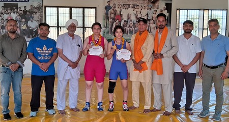 ਬੰਗਾ : ਬੀਤੇ ਦਿਨੀਂ ਹੋਈਆਂ ਵੱਖ ਵੱਖ ਸੂਬਾ ਪੱਧਰੀ ਕੁਸ਼ਤੀ ਚੈਪੀਅਨਸ਼ਿੱਪਾਂ ਵਿਚੋਂ ਪਿੰਡ ਬਾਹੜੋਵਾਲ ਵਿਚ ਚੱਲਦੇ ਕੁਸ਼ਤੀ ਅਖਾੜੇ ਸ੍ਰੀ ਗੁਰੂ ਹਰਗੋਬਿੰਦ ਸਪੋਰਟਸ ਕਲੱਬ ਦੇ ਪਹਿਲਵਾਨ ਲੜਕੀ ਪਹਿਲਵਾਨ ਹੇਜ਼ਲ ਕੌਰ ਨੇ ਇੱਕ ਗੋਲਡ ਮੈਡਲ ਅਤੇ ਪਹਿਲਵਾਨ ਮਨਪ੍ਰੀਤ ਕੌਰ ਇੱਕ ਕਾਂਸੀ ਦਾ ਮੈਡਲ ਜਿੱਤ ਕੇ ਜ਼ਿਲ੍ਹਾ ਸ਼ਹੀਦ ਭਗਤ ਸਿੰਘ ਦਾ ਨਾਮ ਰੋਸ਼ਨ ਕੀਤਾ ਹੈ। ਇਹਨਾਂ ਜੇਤੂ ਪਹਿਲਵਾਨ ਲੜਕੀਆਂ ਦਾ ਸਨਮਾਨ ਮੁੱਖ ਮਹਿਮਾਨ ਸ. ਬਲਦੇਵ ਸਿੰਘ ਮਾਨ ਗੁਣਾਚੌਰ ਨੇ ਆਪਣੇ ਕਰ ਕਮਲਾਂ ਨਾਲ ਕੀਤਾ । ਉਹਨਾਂ ਨੇ ਜੇਤੂ ਪਹਿਲਵਾਨ ਲੜਕੀਆਂ ਦੀ ਹੌਂਸਲਾ ਅਫਜਾਈ ਕਰਦੇ ਹੋਏ ਉਹਨਾਂ ਦੇ ਸੁਨਿਹਰੀ ਭਵਿੱਖ ਦੀ ਕਾਮਨਾ ਕੀਤੀ ਅਤੇ ਆਸ ਪ੍ਰਗਟਾਈ ਇਹ ਧੀਆਂ ਹੋਰ ਲੜਕੀਆਂ ਲਈ ਵੀ ਪ੍ਰਰੇਣਾ ਸਰੋਤ ਬਣਨਗੀਆਂ । ਇਸ ਮੌਕੇ ਕਲੱਬ ਦੇ ਚੇਅਰਮੈਨ ਮਲਕੀਅਤ ਸਿੰਘ ਬਾਹੜੋਵਾਲ ਸਾਬਕਾ ਚੇਅਰਮੈਨ ਮਾਰਕਫੈੱਡ ਪੰਜਾਬ ਨੇ ਜਾਣਕਾਰੀ ਦਿੰਦੇ ਦੱਸਿਆ ਕਿ ਬੀਤੀ ਦਿਨੀ ਜ਼ਿਲ੍ਹਾ ਬਠਿੰਡਾ ਵਿਖੇ ਹੋਈ ਅੰਡਰ 15 ਸਾਲ ਕੁਸ਼ਤੀ ਚੈਪੀਅਨਸ਼ਿੱਪ 50 ਕਿਲੋ ਭਾਰ ਵਰਗ ਵਿਚ ਪਹਿਲਵਾਨ ਹੇਜ਼ਲ ਕੌਰ ਪੁੱਤਰੀ ਮਾਸਟਰ ਗੁਰਨਾਮ ਰਾਮ-ਰਾਜਿੰਦਰ ਕੁਮਾਰੀ ਪਿੰਡ ਭਰੋ ਮਜਾਰਾ ਨੇ ਗੋਲਡ ਮੈਡਲ ਜਿੱਤਿਆ । ਜਦੋਂ ਕਿ ਅੰਡਰ 20 ਸਾਲ ਤੇ 72 ਕਿਲੋ ਭਾਰ ਵਰਗ ਵਿਚ ਮਨਪ੍ਰੀਤ ਕੌਰ ਪੁੱਤਰੀ ਹਰਜਿੰਦਰ ਸਿੰਘ-ਰਾਜਵਿੰਦਰ ਕੌਰ ਪਿੰਡ ਬਹਿਰਾਮ ਨੇ ਕਾਂਸੀ ਦੇ ਮੈਡਲ ਜਿੱਤ ਕੇ ਆਪਣਾ, ਆਪਣੇ ਮਾਪਿਆਂ ਦਾ, ਆਪਣੇ ਅਖਾੜੇ ਦਾ ਅਤੇ ਜ਼ਿਲ੍ਹਾ ਸ਼ਹੀਦ ਭਗਤ ਸਿੰਘ ਦਾ ਨਾਮ ਰੋਸ਼ਨ ਕੀਤਾ ਹੈ । ਇਸ ਮੌਕੇ ਇਹਨਾਂ ਜੇਤੂ ਪਹਿਲਵਾਨਾਂ ਦਾ ਸਨਮਾਨ ਕੀਤਾ ਅਤੇ ਉਨ੍ਹਾਂ ਦੇ ਮਾਪਿਆਂ ਨੂੰ ਵਧਾਈਆਂ ਵੀ ਦਿੱਤੀਆਂ । ਇਸ ਸਨਮਾਨ ਸਮਾਰੋਹ ਮੌਕੇ ਸ. ਗੁਰਮੁੱਖ ਸਿੰਘ ਗੁਣਾਚੌਰ, ਸ੍ਰੀ ਬਲਬੀਰ ਸੋਂਧੀ ਕੁਸ਼ਤੀ ਕੋਚ, ਮਾਸਟਰ ਗੁਰਨਾਮ ਰਾਮ, ਮਾਸਟਰ ਸੁਖਵਿੰਦਰ ਸਿੰਘ, ਸ. ਸਰਬਜੀਤ ਸਿੰਘ ਸੱਬਾ ਸਾਬਕਾ ਸਰਪੰਚ ਬਾਹੜੋਵਾਲ ਅਤੇ ਹੋਰ ਪਤਵੰਤੇ ਵੀ ਸੱਜਣ ਹਾਜ਼ਰ ਸਨ ।